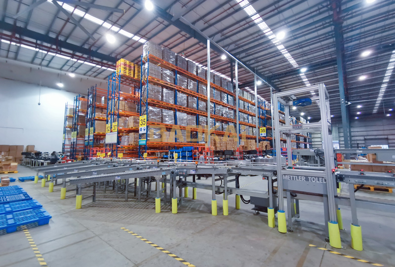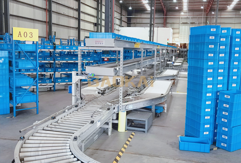 播種包裝線,利用輸送系統(tǒng)打通了電子標(biāo)簽播種區(qū)的提總貨物的補(bǔ)給工作。播種完成后往包裝區(qū)域輸送(采用積放式布局,充分的實(shí)現(xiàn)包裝區(qū)域的貨等人的場(chǎng)景),包裝完成后空箱回流流向播種區(qū),整體可實(shí)現(xiàn)電商2000單/小時(shí)的發(fā)貨任務(wù)。