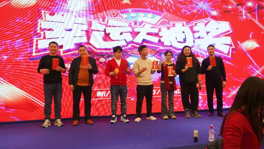 各位領導逐一上臺為大家抽取并為幸運兒頒發(fā)獎品,同時臨時增設超額獎勵和隨機紅包,逐漸將晚宴氣氛推向高潮。